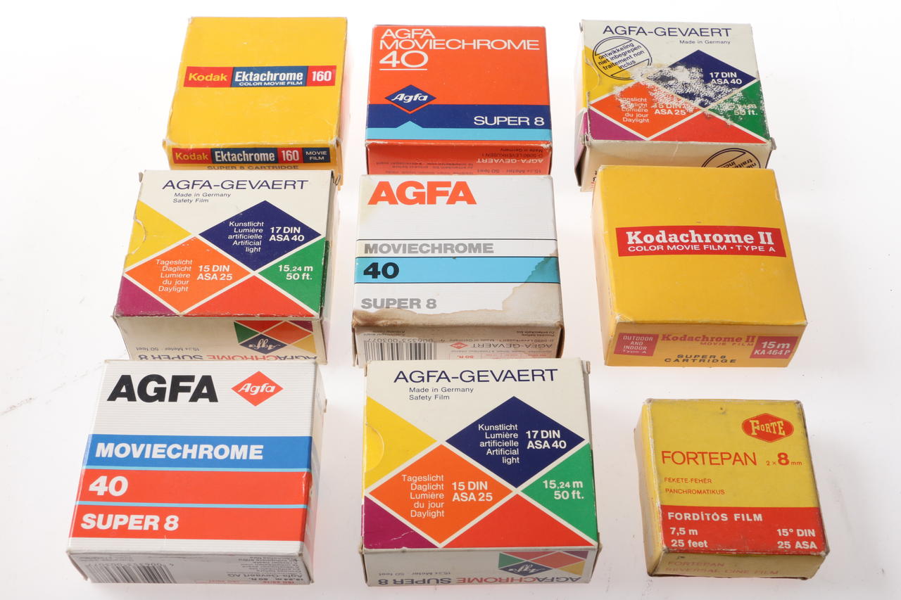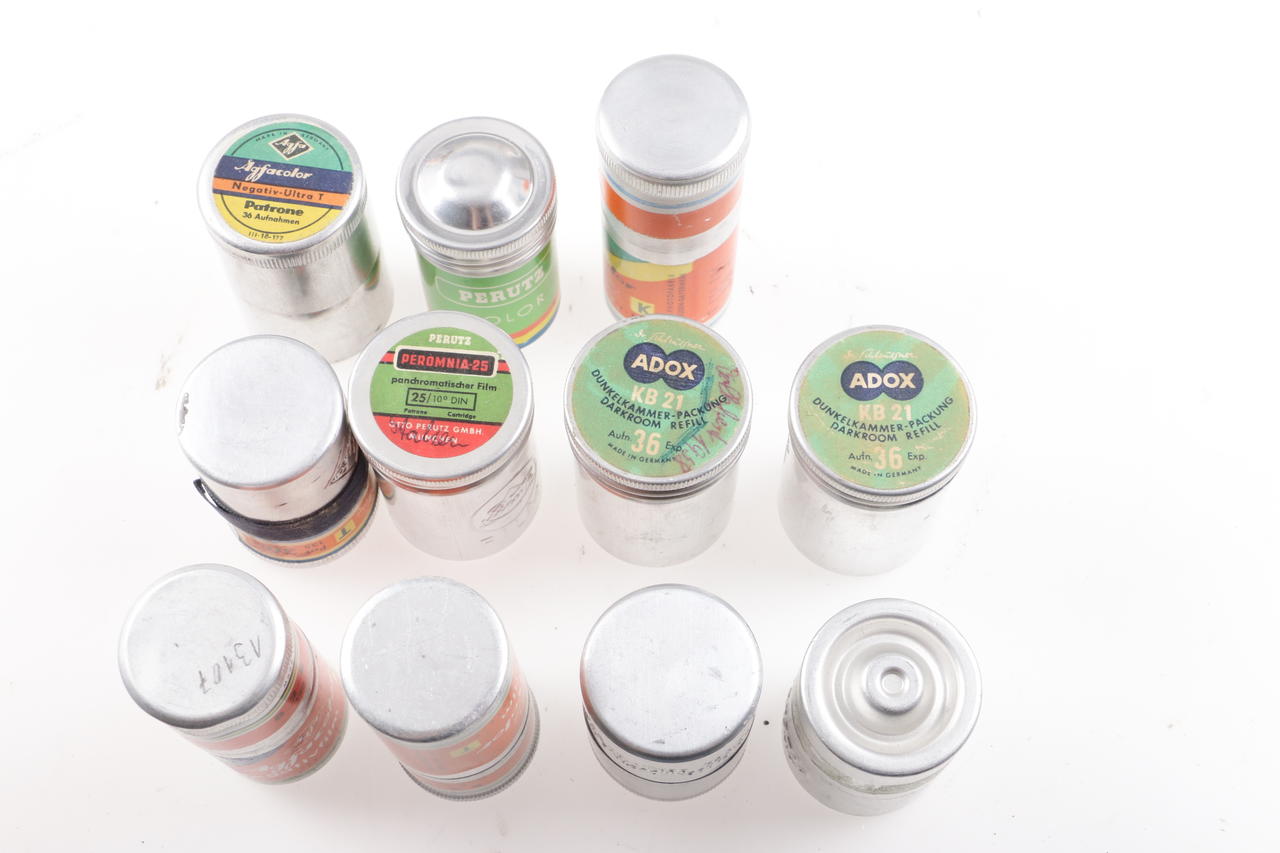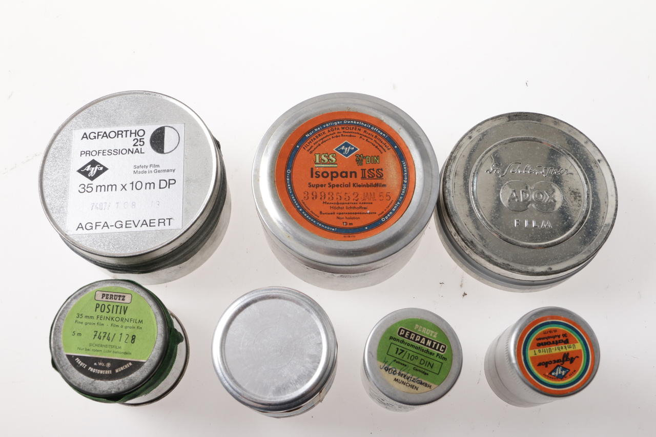 Various historical empty film packages