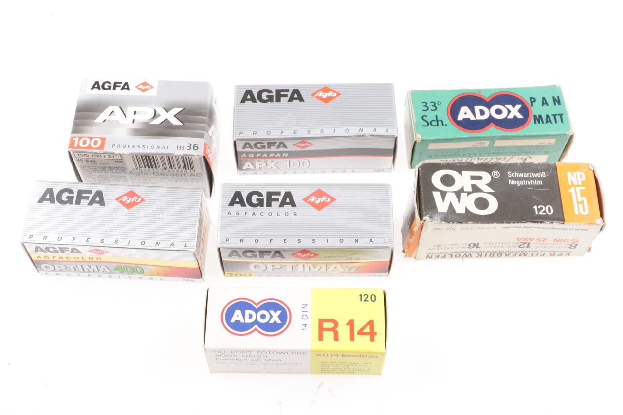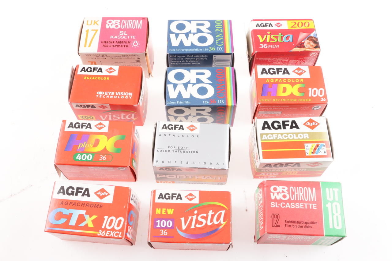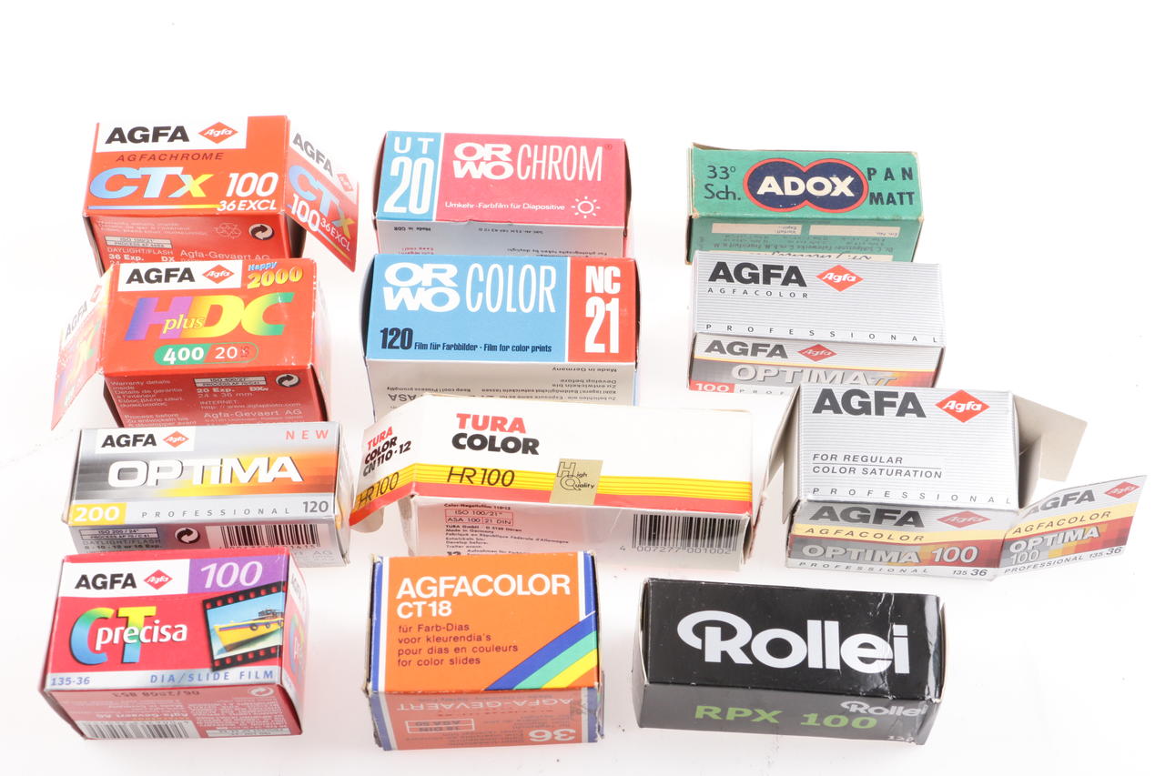 Various historical empty film packages