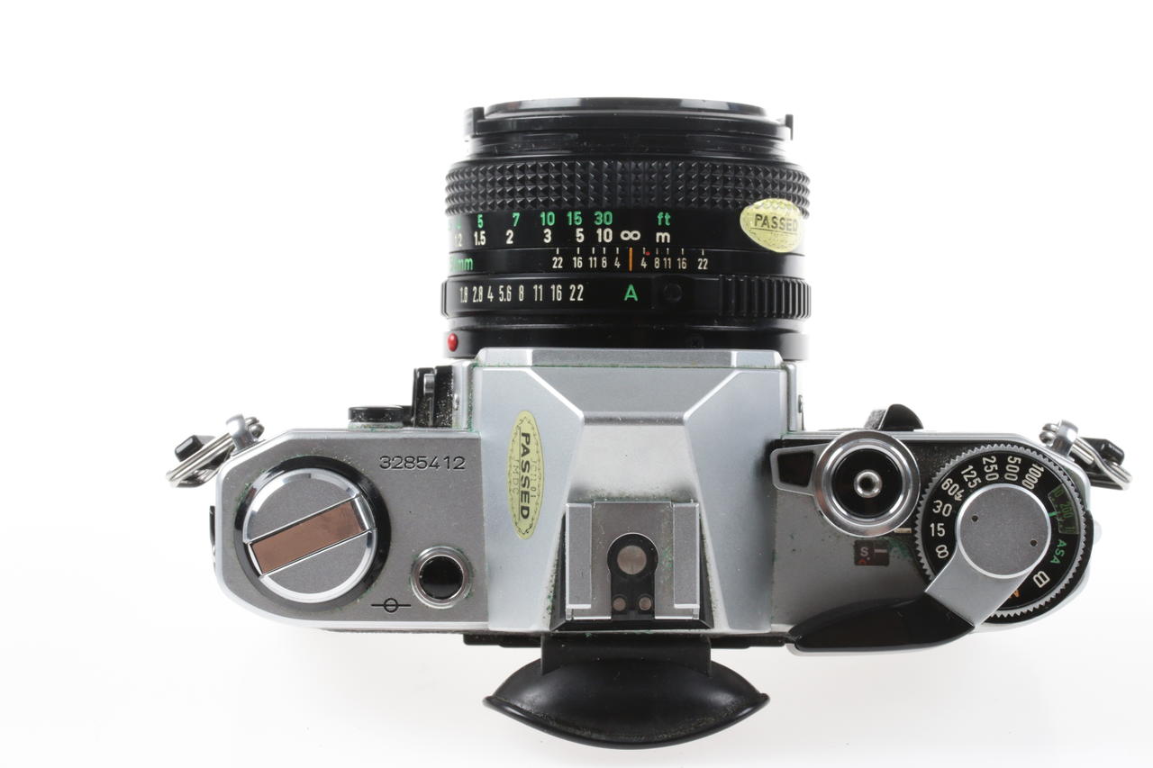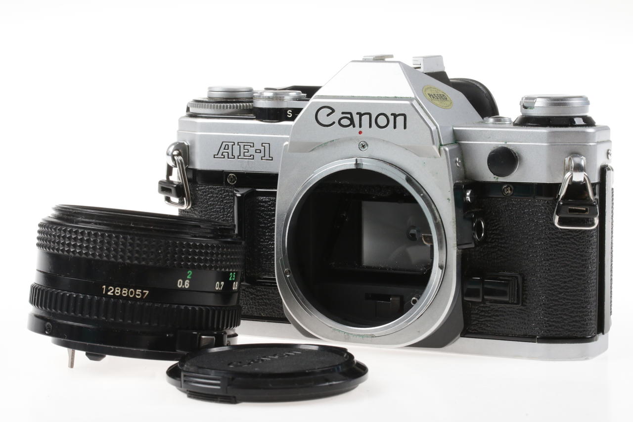 Analog SLR camera made by Canon with light strong standard lens