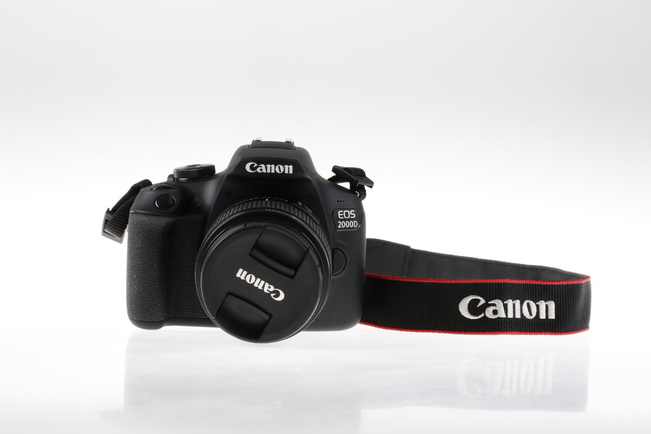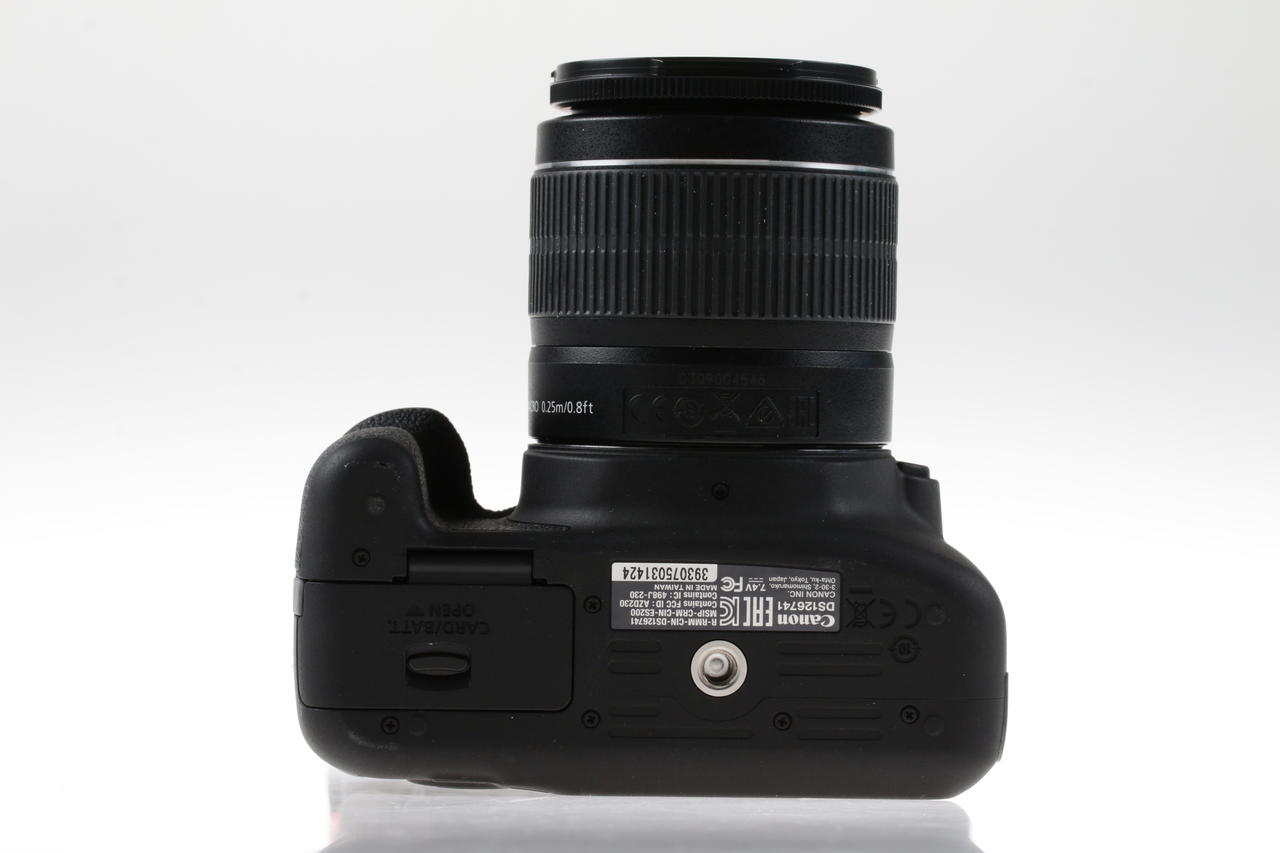 Canon digital single-lens reflex camera (DSLR) with APS-C sensor and standard kit lens.