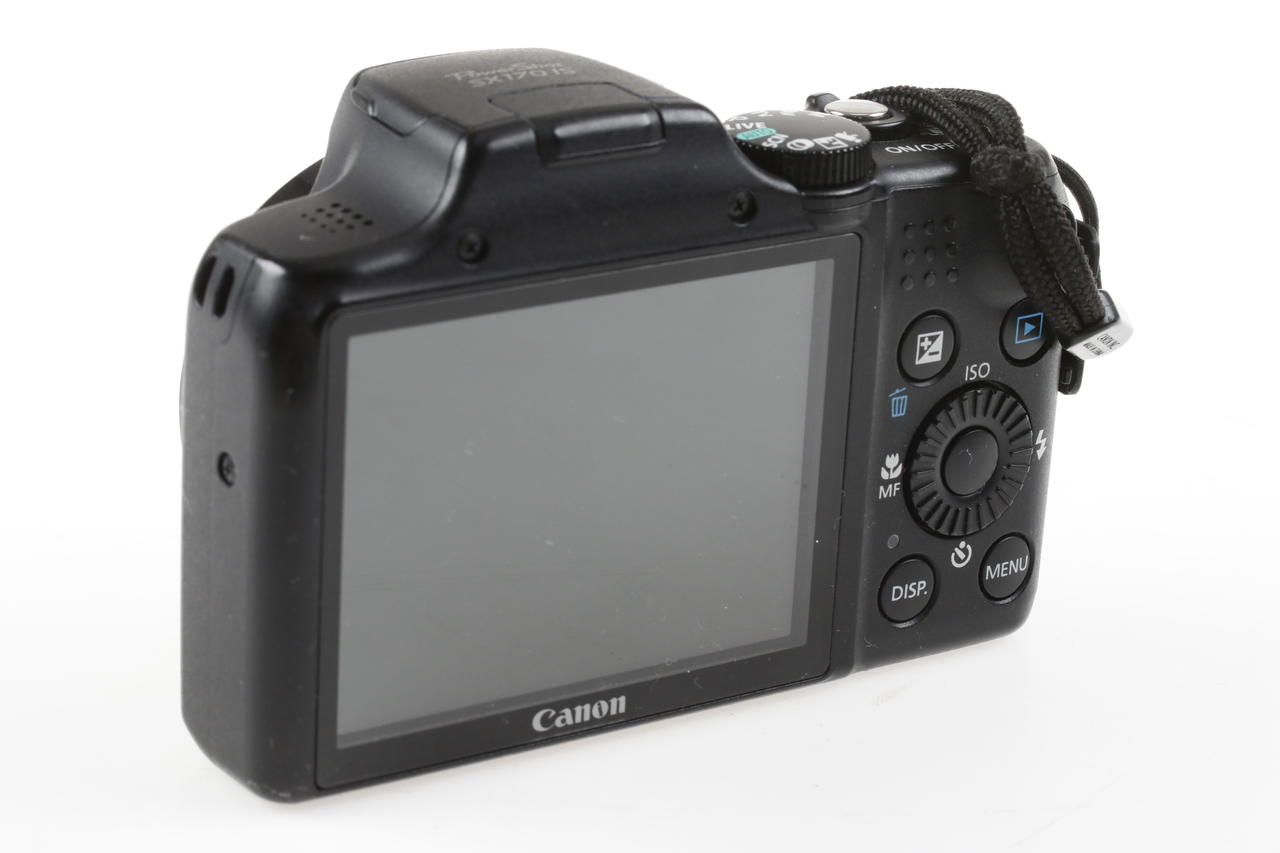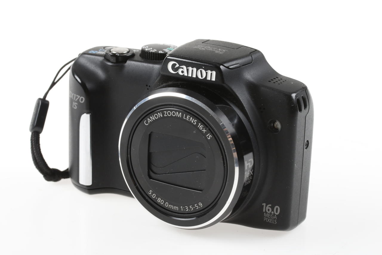 Digital compact camera from Canon with integrated lens-shift image stabilizer and 16 megapixel sensor resolution.
