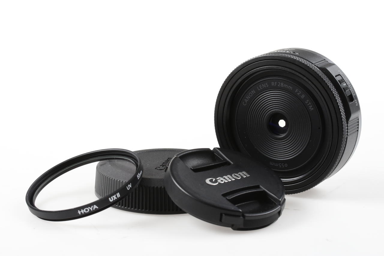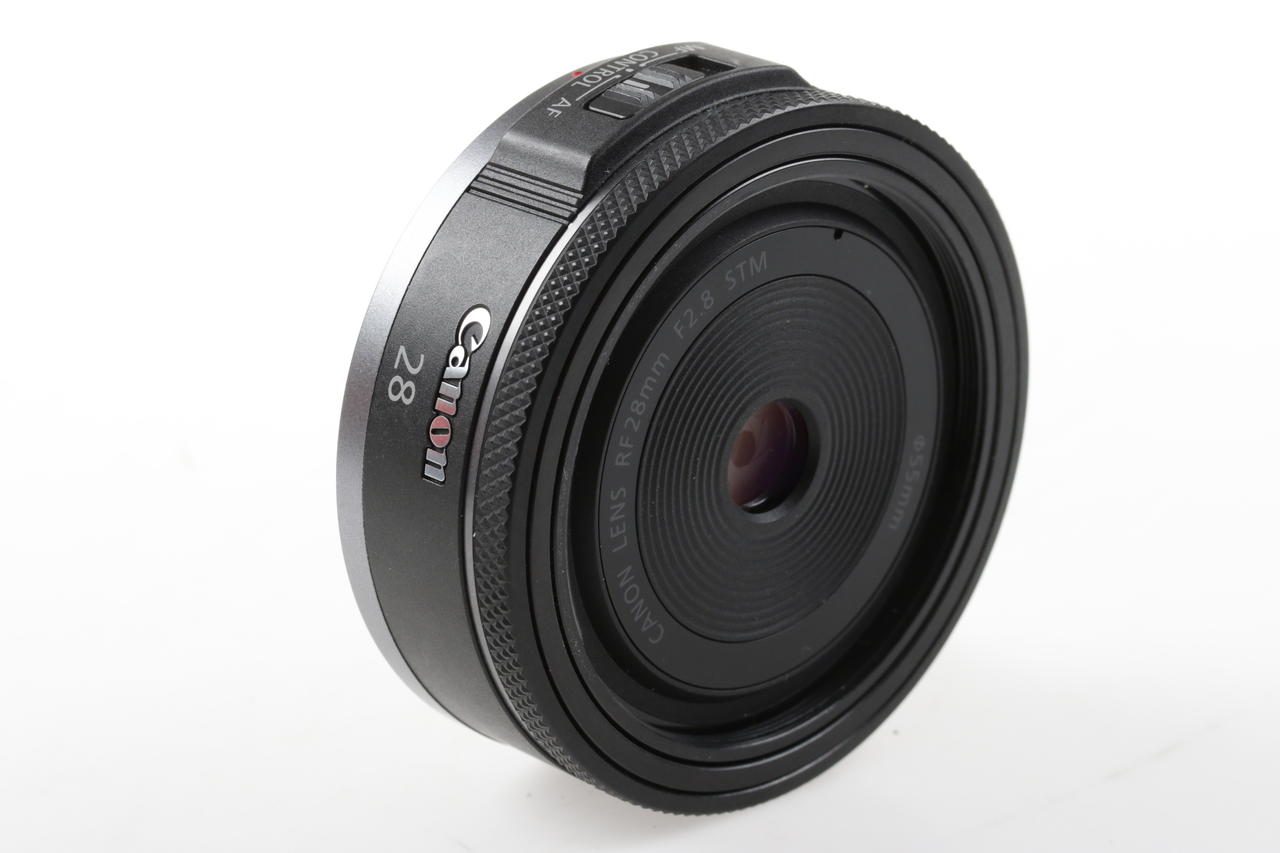 Canon RF 28mm F2.8 STM is a lightweight and compact full-frame RF lens with a wonderfully slim pancake design.
