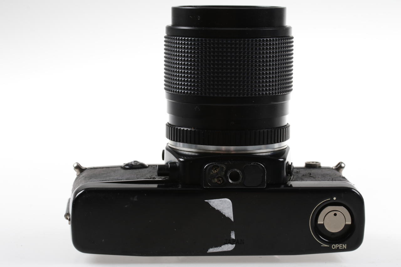 Condition in Detail: leathering worn off / loose, light meter functional (values not checked), focus very easy to turn, signs of wear on base plate, painting damaged / worn off, minor dust inclusions, slight, age-related clouding of the lens, medium signs of wear, dust in viewfinder, zoom very easy to turn