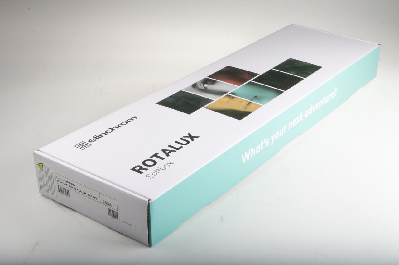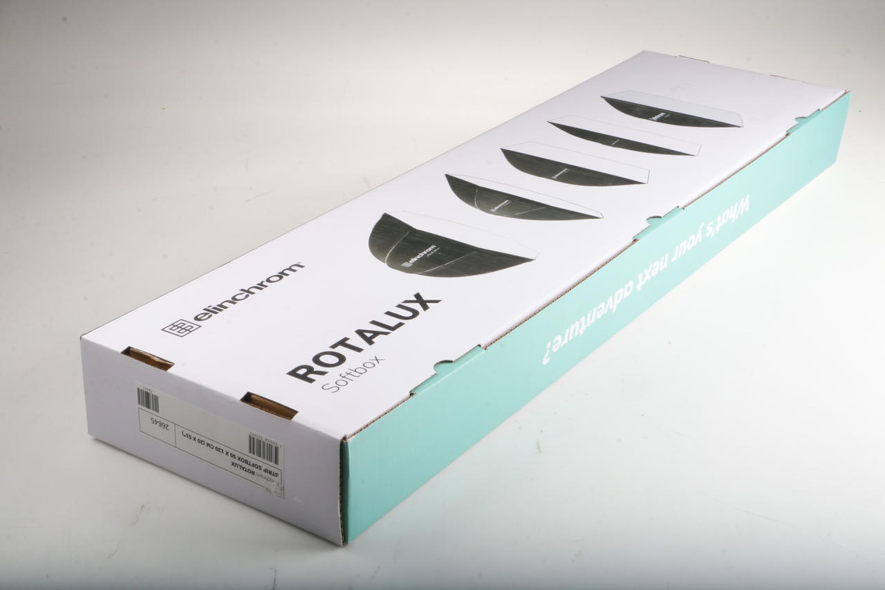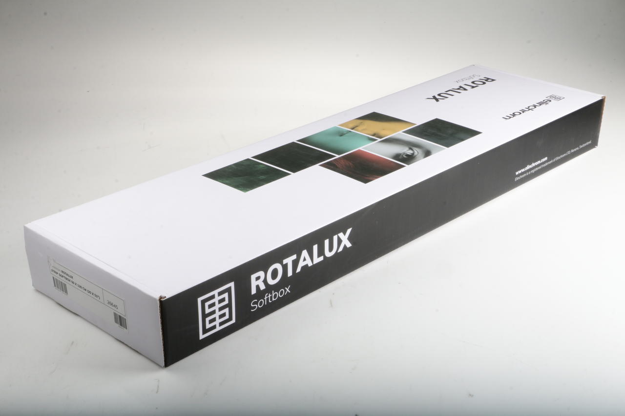 Narrow Rotalux strip softbox (50×130 cm) for directional, soft light; Rotalux speed ring required