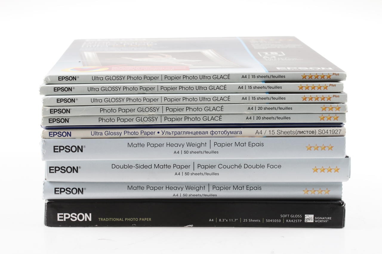 Bundle includes a variety of high-quality Epson inkjet papers in DIN A4 format