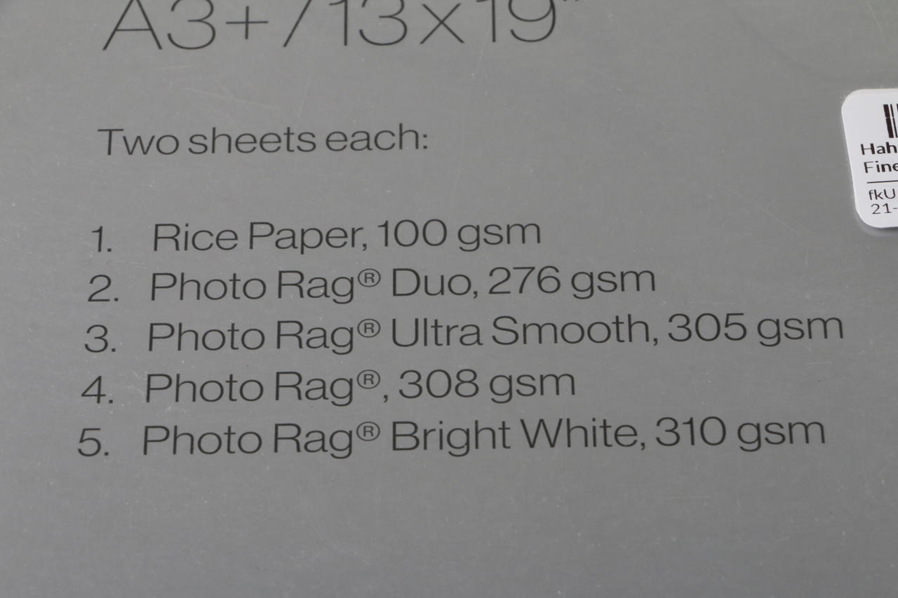 Rice Paper (100 gsm), Photo Rag Duo (276 gsm), Photo Rag Ultra Smooth (305 gsm),