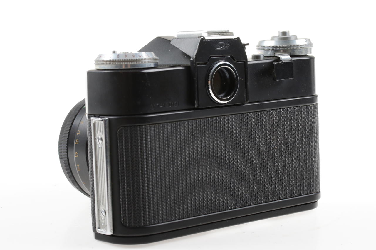 Condition in Detail: light meter functional (values not checked), scratches on front glass, minor signs of wear, minor dust inclusions, slight, age-related clouding of the lens, oil on the aperture blades, Fungus in the viewfinder