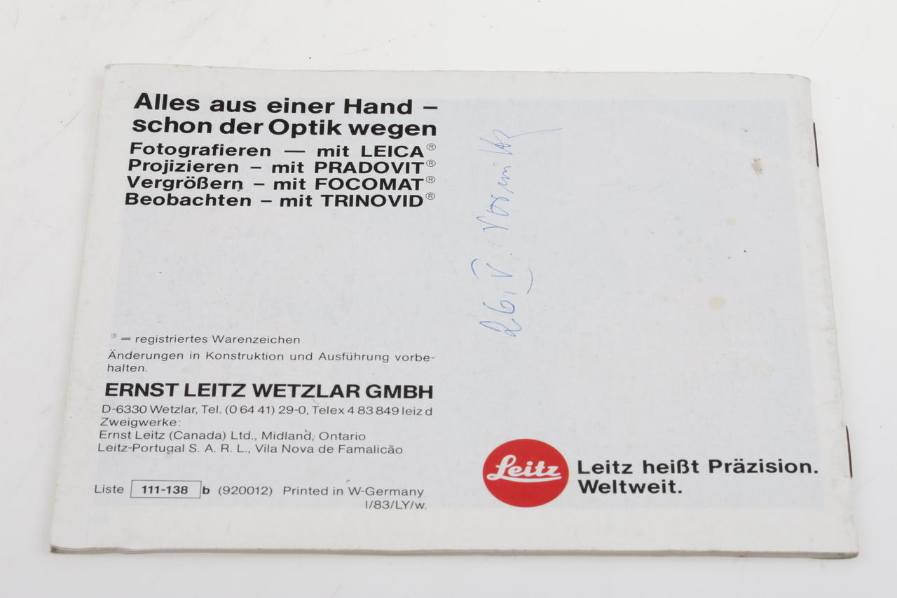 Original operating instructions for the Leica R4 SLR camera