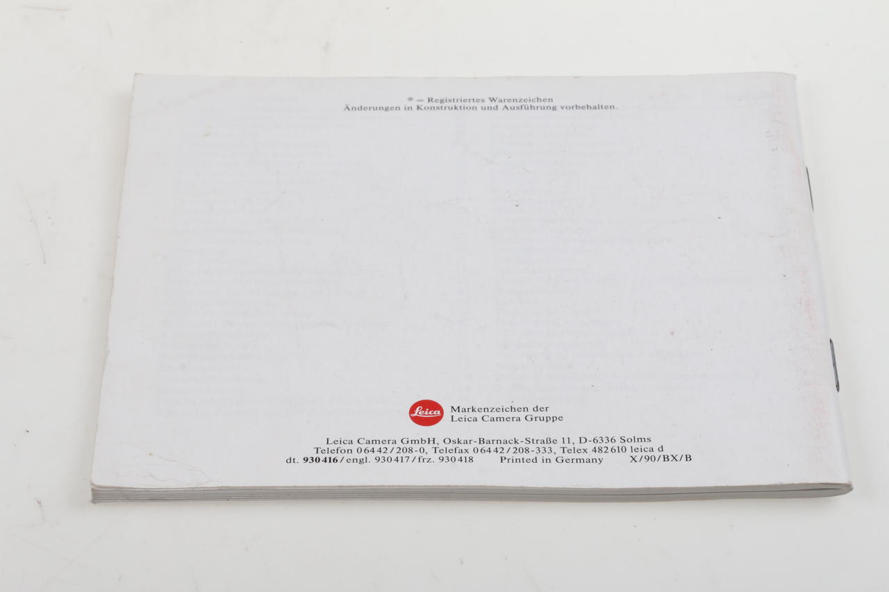 Original operating instructions for the Leica R-E SLR camera.