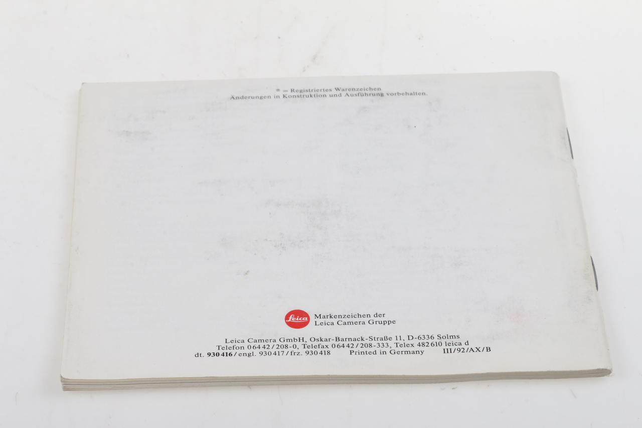 Original operating instructions for the Leica R-E SLR camera.