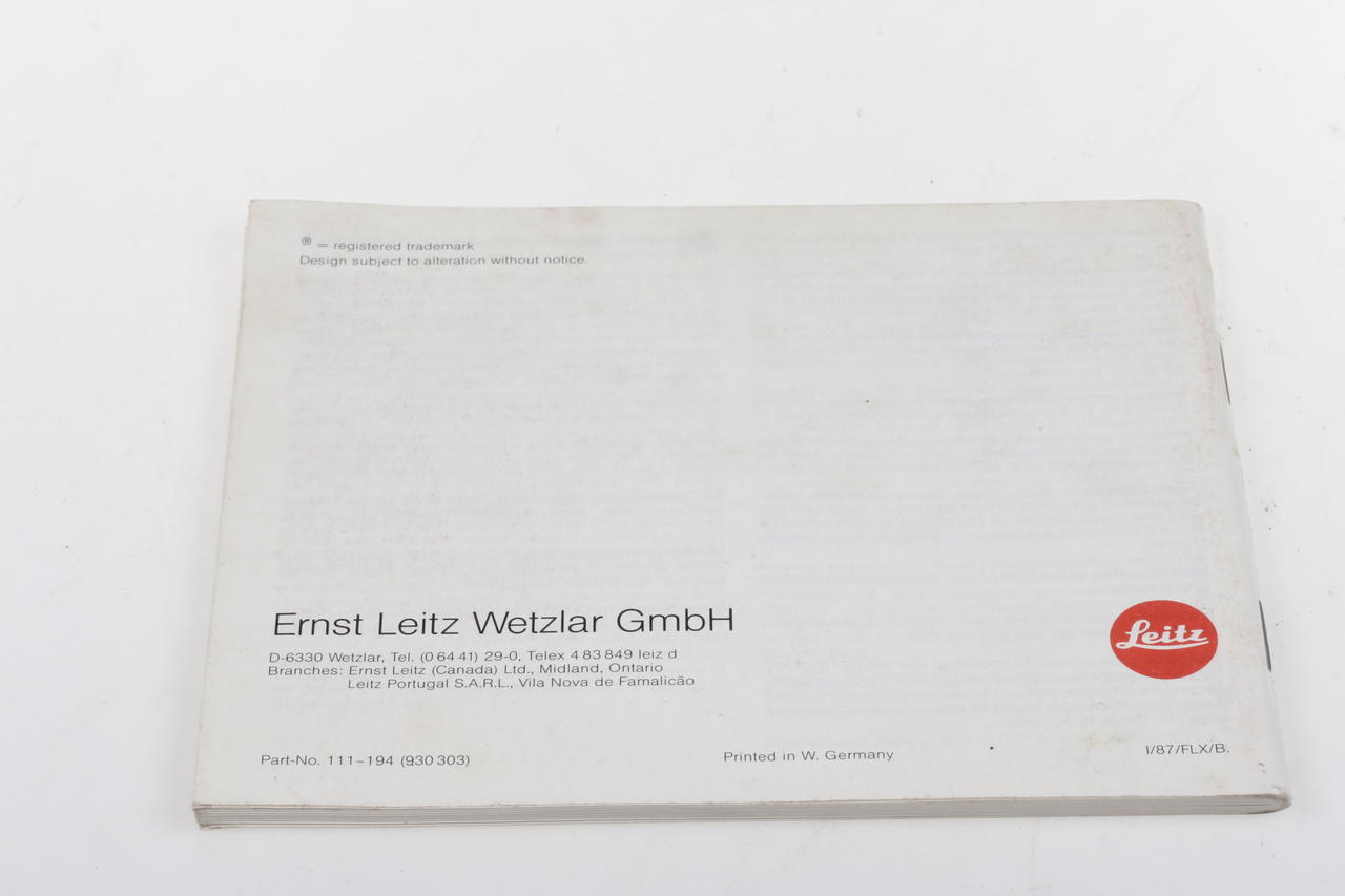 Original operating instructions for the Leica R5 SLR camera – English