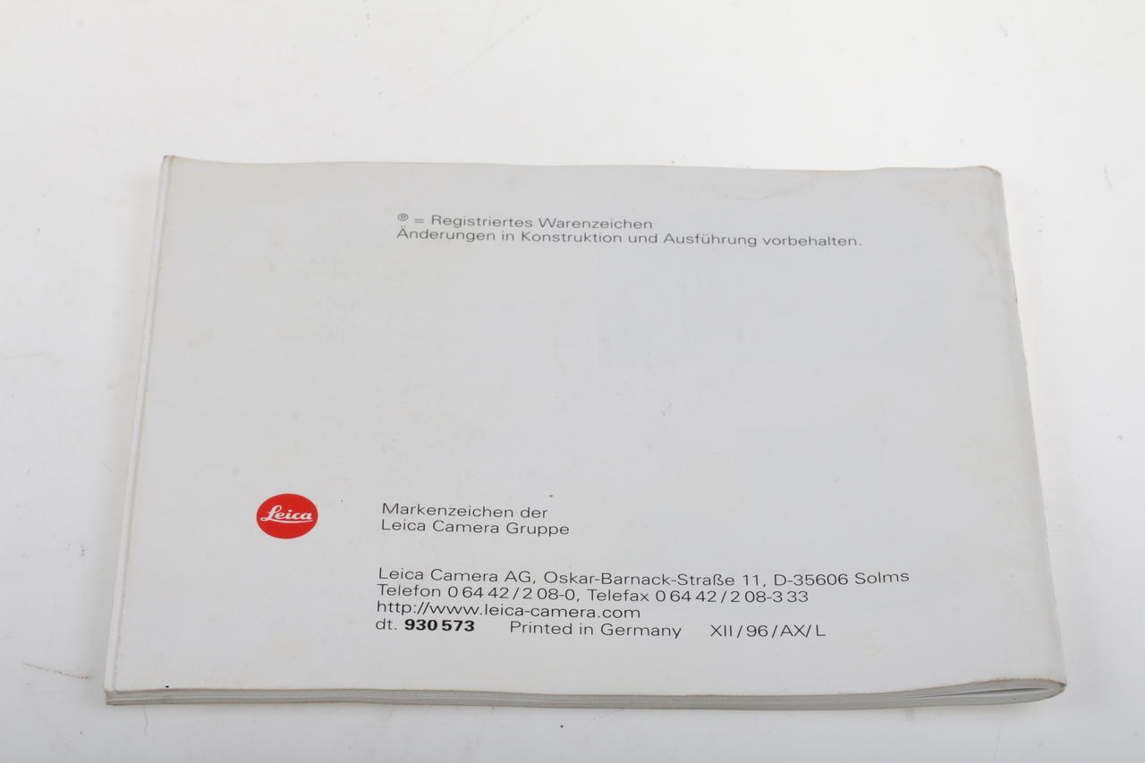 Original printed operating instructions in German for the Leica R8