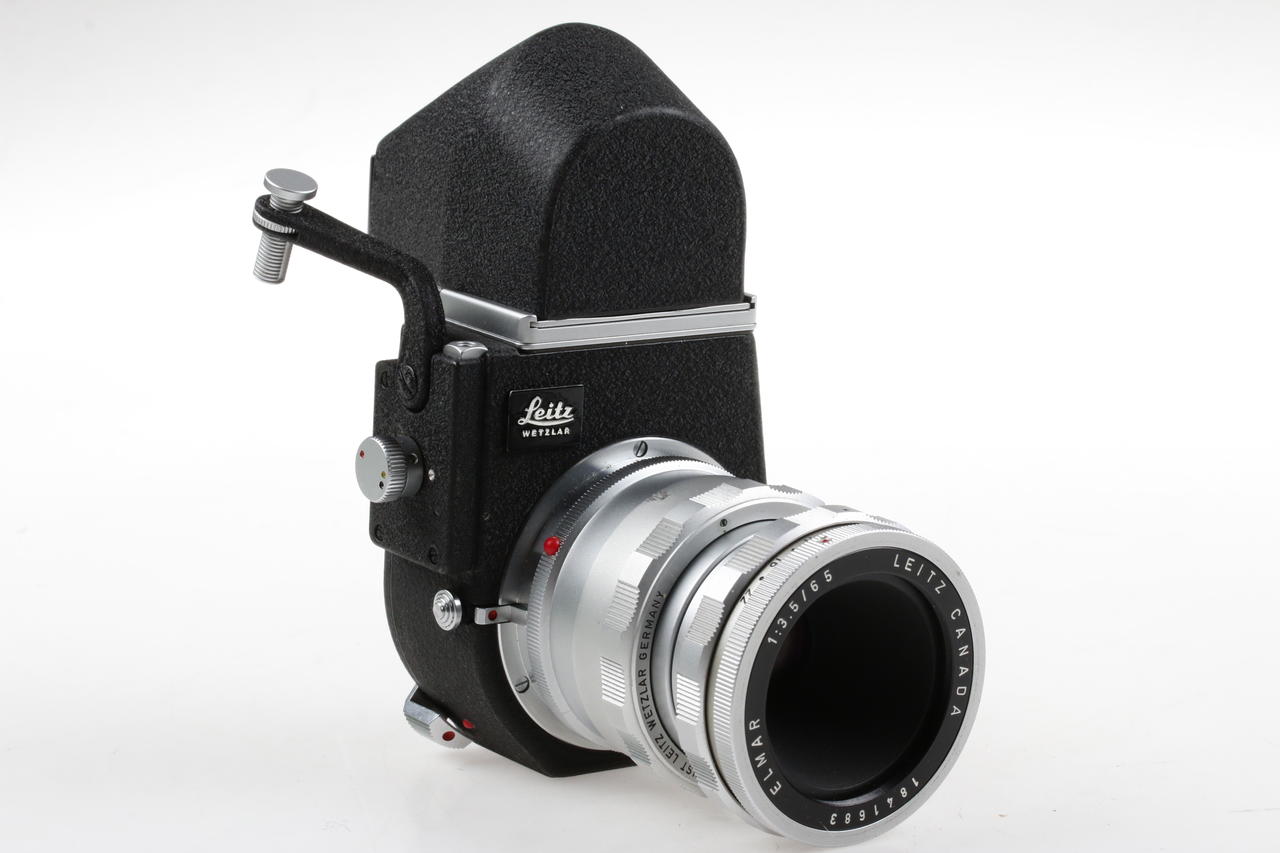 Leica M Visoflex mirror box + 90° prism viewfinder Leitz Wetzlar with Leitz Canada Leica Elmar 1:3.5/65mm