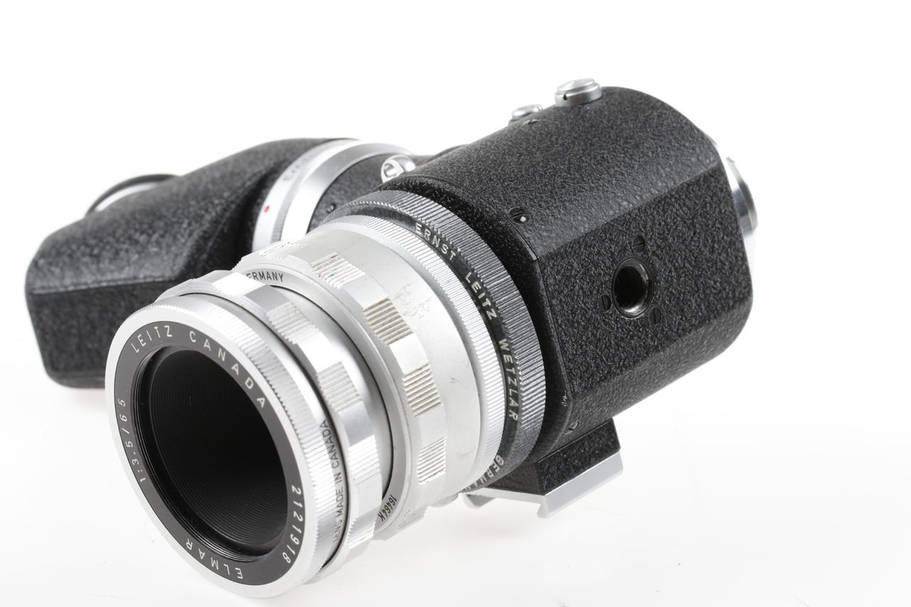 Leica M Visoflex mirror box + 90° prism viewfinder Leitz Wetzlar with Leitz Canada Leica Elmar 1:3.5/65mm