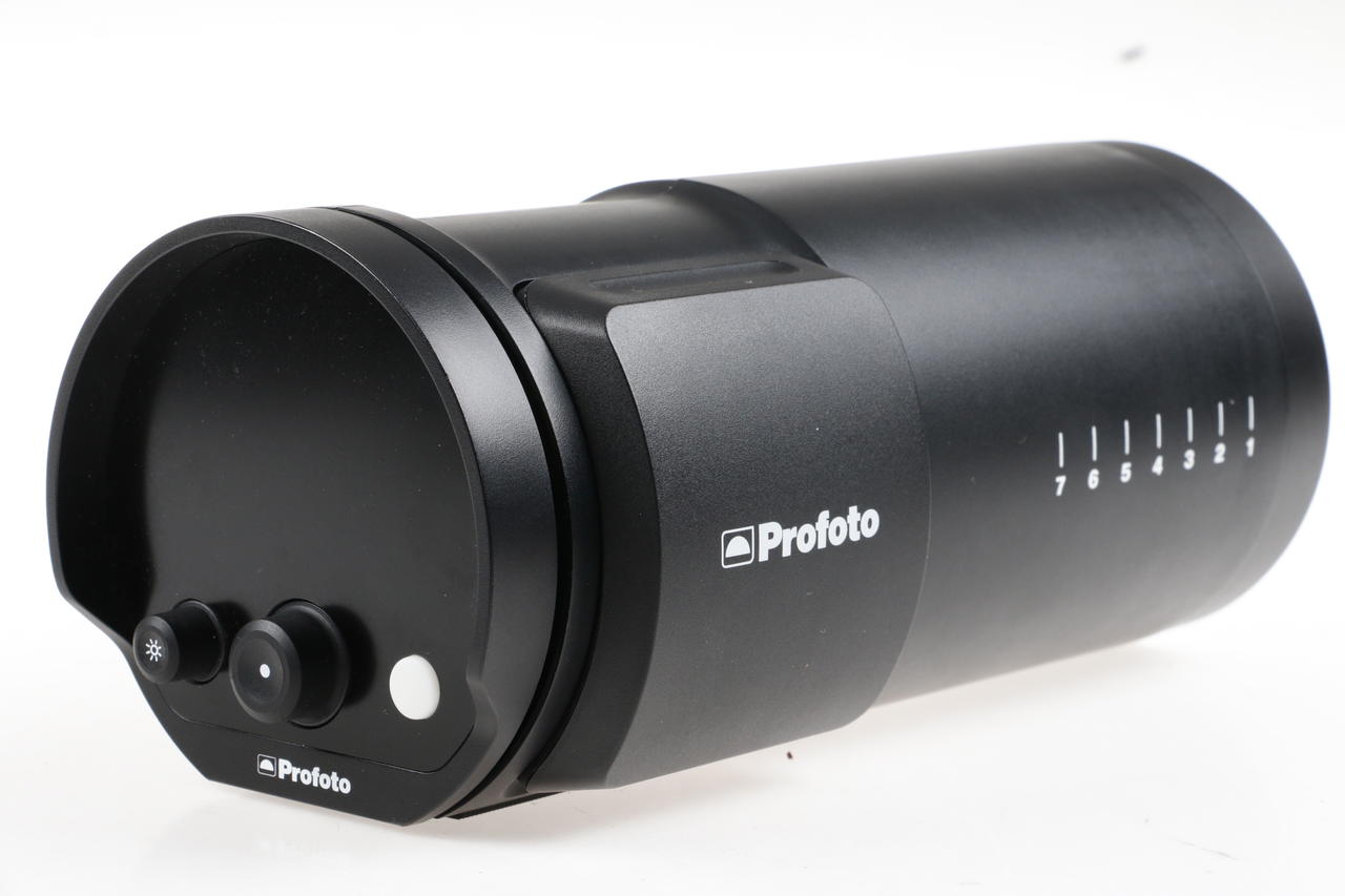Battery-powered off-camera flash from Profoto with 500 watts of flash power, TTL exposure control, app connectivity via Bluetooth and LED modeling light with adjustable color temperature.