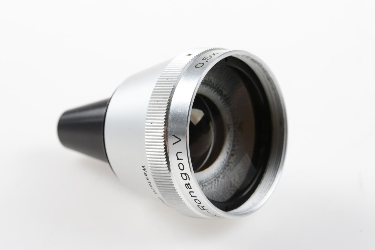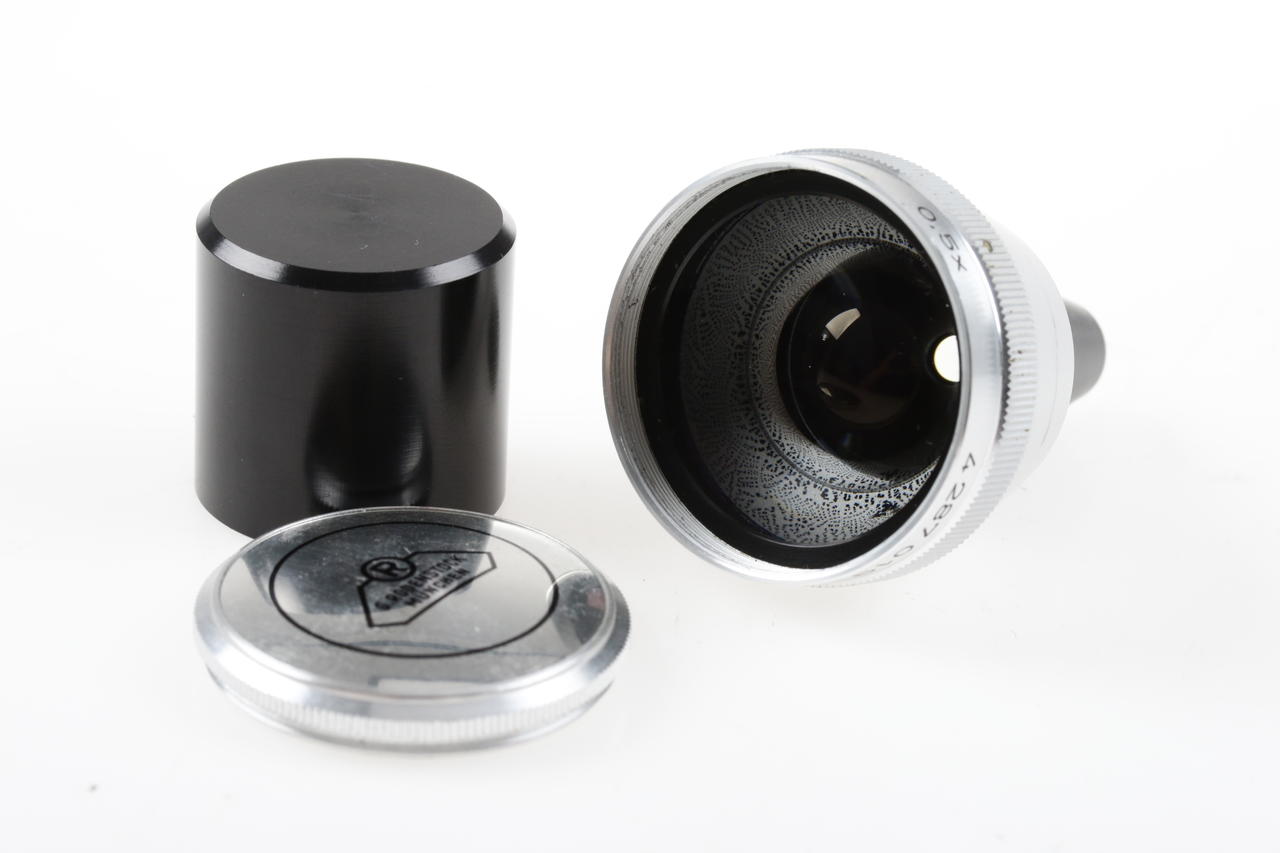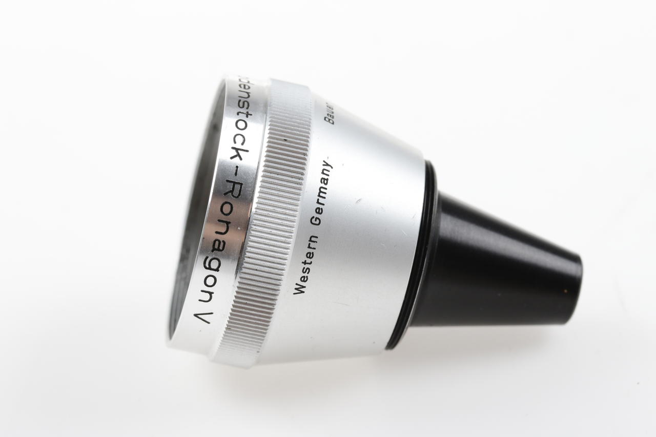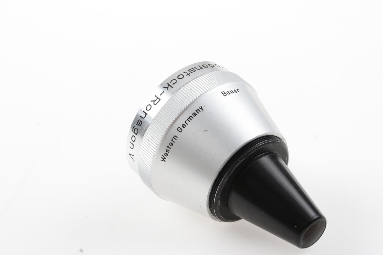 Rodenstock Ronagon V is a 0.5x wide-angle attachment for the Bauer 88 Super 8 camera. It is screwed in front of the standard lens and significantly expands the image angle.