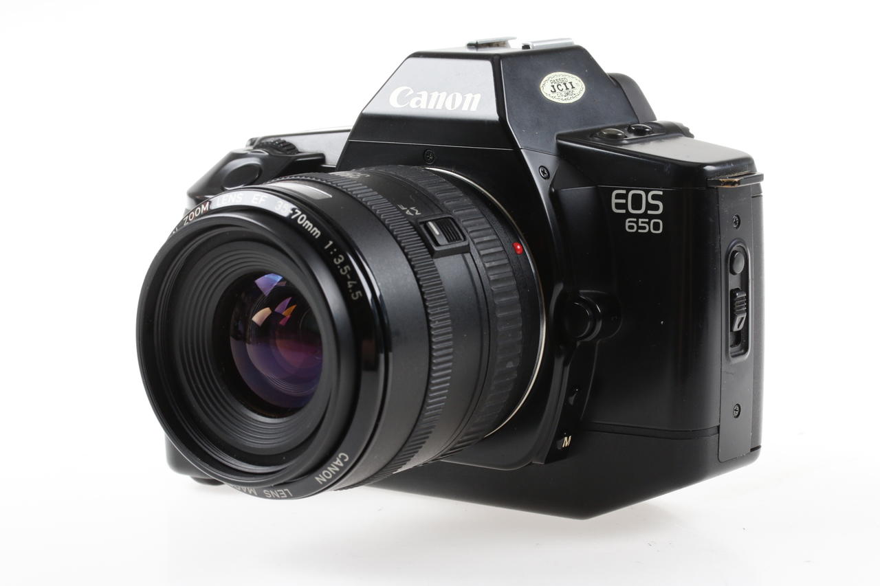 Analoge Spiegelreflexkamera mit Zoom-Objektiv von Canon