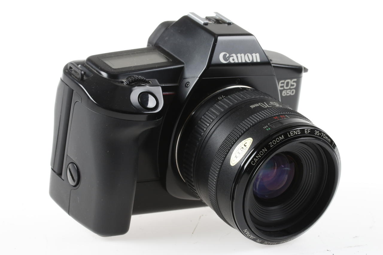 Analoge Spiegelreflexkamera mit Zoom-Objektiv von Canon