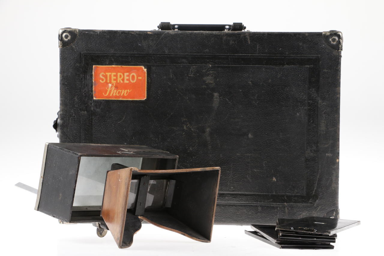 Stereokamera mit Betrachter und Koffer