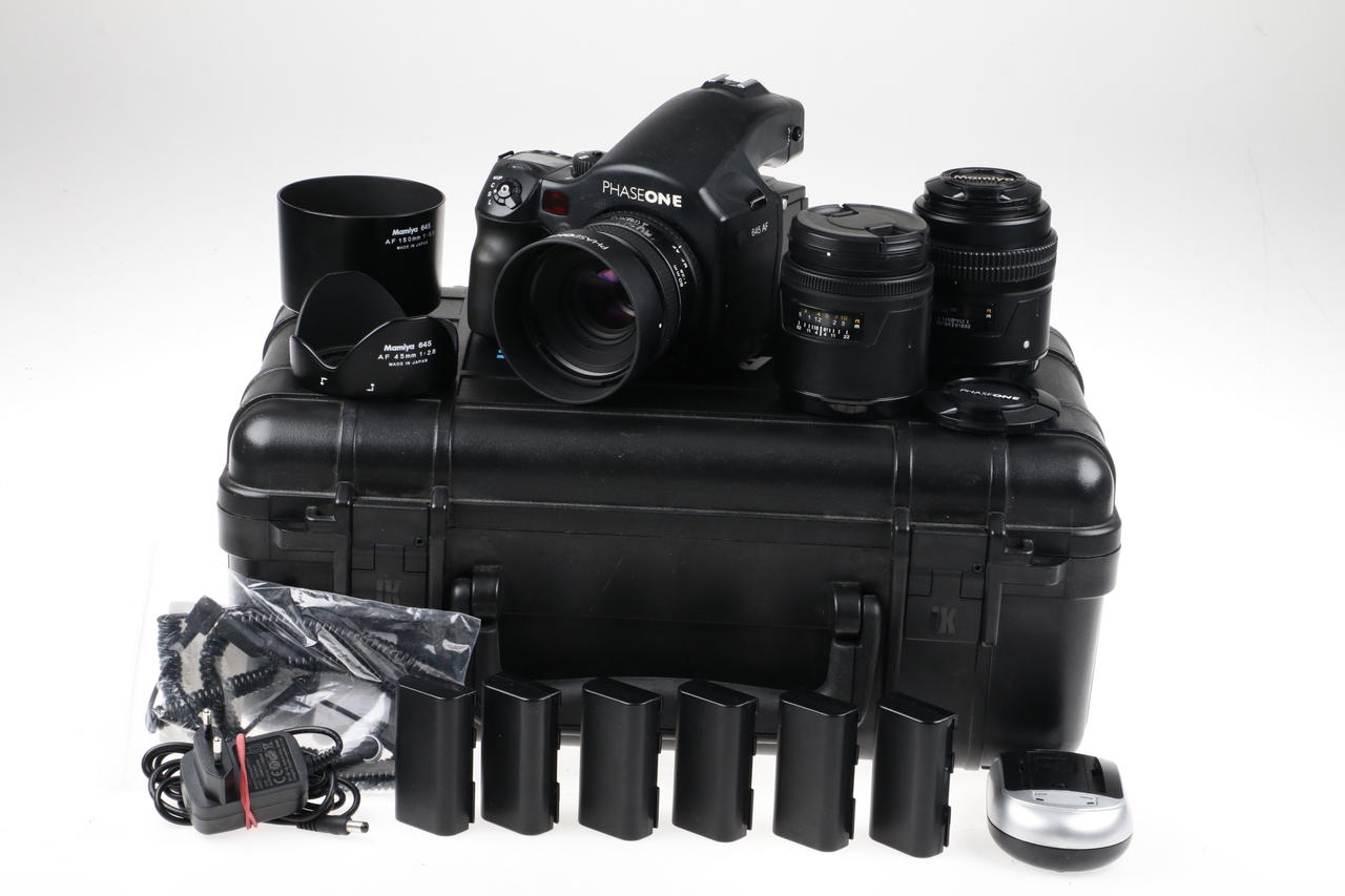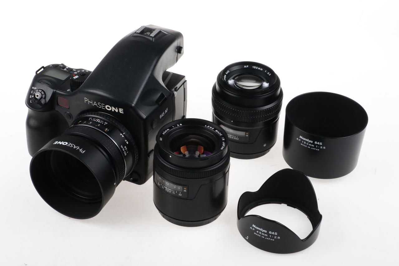 Analoge SLR-Kamera mit Weitwinkelobjektiv, Standard und Teleobjektiv