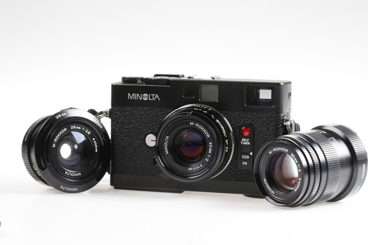 Minolta CLE Messsucherkamera mit drei Objektive, Blitz und Tasche