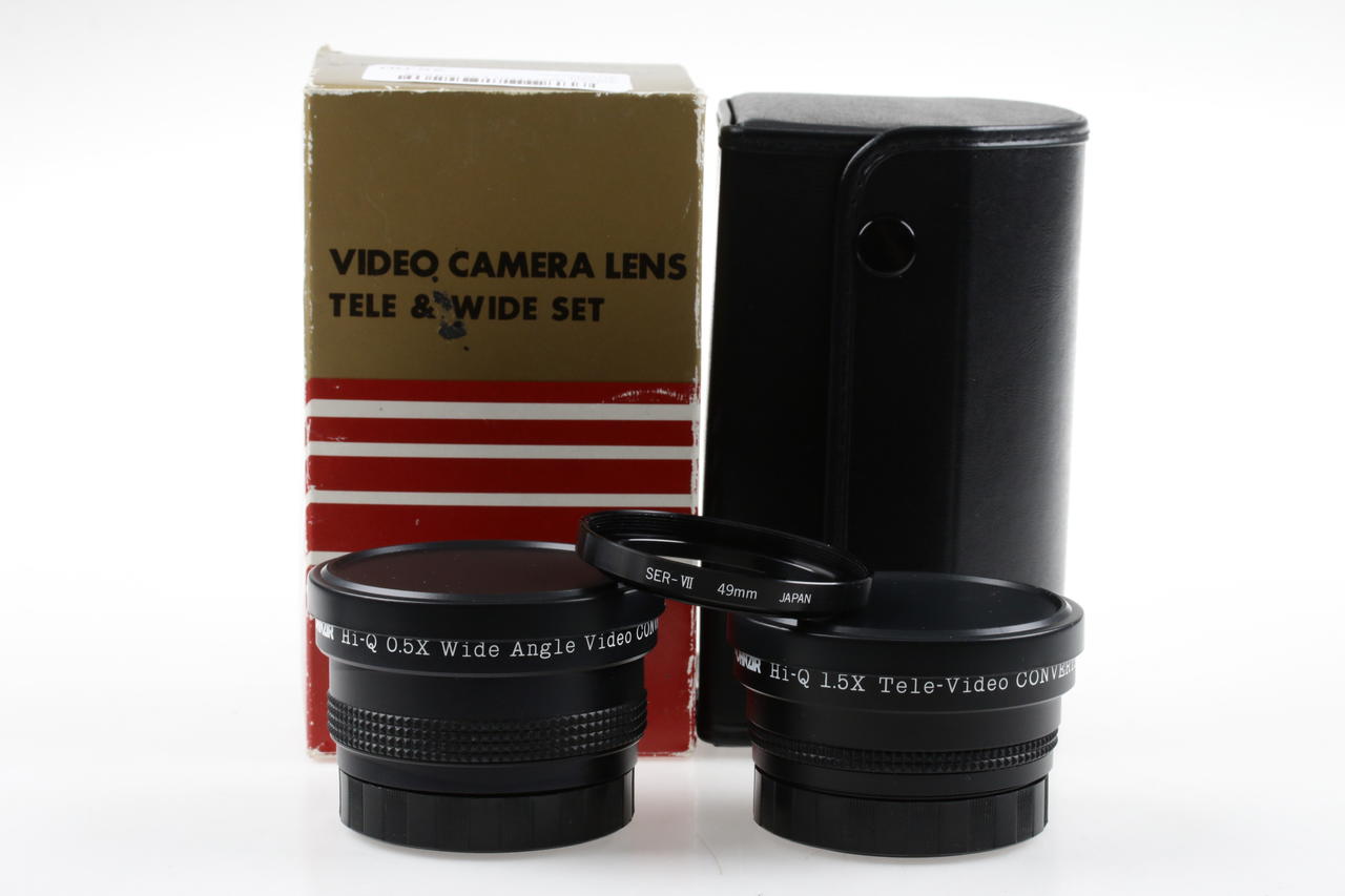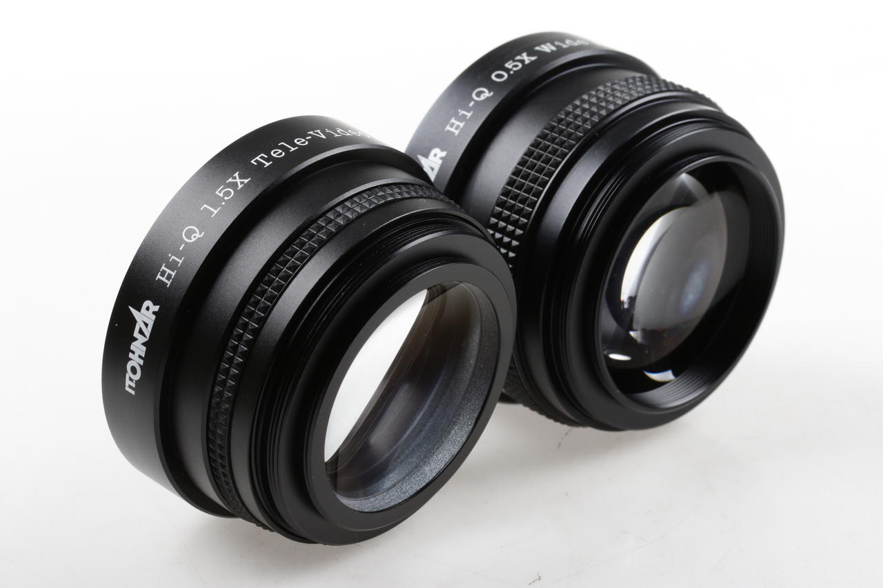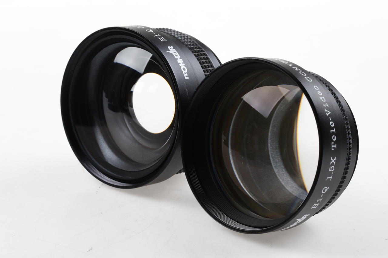 Zweiteiliges Vorsatzlinsen-Set zur Brennweitenverlängerung oder -verkürzung bei Videokameras mit Frontgewinde